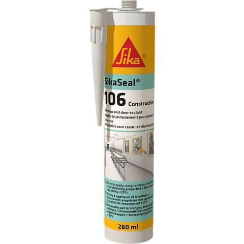 SikaSeal®-106 Construction es un sellador de juntas elástico, monocomponente y multiuso, diseñado para juntas en cerramientos de edificios. Tiene buena adherencia a la mayoría de los materiales de construcción. Proporciona un sellado impermeable que no amarillea y es pintable. Capacidad de movimiento ±25 %. Para uso tanto en interior como exterior.