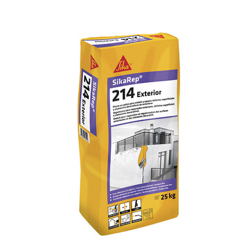 SikaRep®-214 Exterior es un plaste en polvo, cementoso, para enlucir y reparar defectos, elementos decorativos, superficies exteriores, etc. Clase R2
