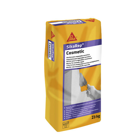 SikaRep® Cosmetic es un mortero para reparaciones superficiales cosméticas, monocomponente, a base de cemento, áridos finos y mejorado con resinas sintéticas que se aplica en capa fina