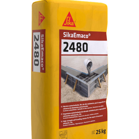 SikaEmaco®-2480 es un mortero autonivelante R4, de elevadas resistencias iniciales y finales, adecuado para la reparación y el refuerzo de cualquier tipo de estructura de edificación y obra civil. Resistente a los sulfatos, es aplicable en espesores de hasta 150 mm.