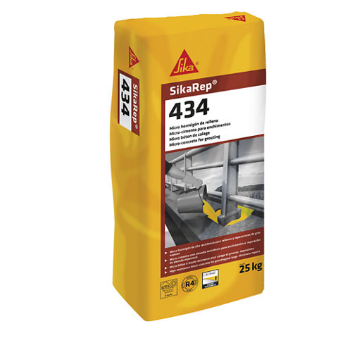SikaRep®-434 es un micro hormigón de retracción compensada, de elevadas prestaciones, exento de agregados metálicos, cloruros y en general de productos que generan gases en el seno de la masa. Al SikaRep®-434 se le incorpora insitu árido calibrado SikaRep®-512 a la mezcla.